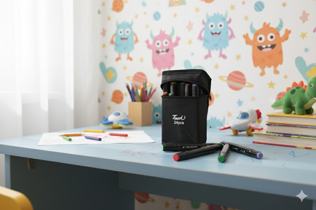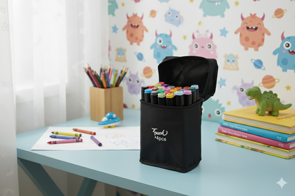 Descubra o Estojo de Canetinhas com 24 Cores e Ponta Dupla, a escolha perfeita para ilustrações vibrantes, desenhos detalhados e coloração profissional. Nossas canetinhas oferecem versatilidade com pontas fina e larga, garantindo precisão e preenchimento suave. Ideal para artistas, designers, estudantes e entusiastas de arte que buscam alta qualidade e durabilidade. Com a ART.C, suas criações ganham vida com cores intensas e consistentes. Adquira já seu kit completo e liberte sua criatividade