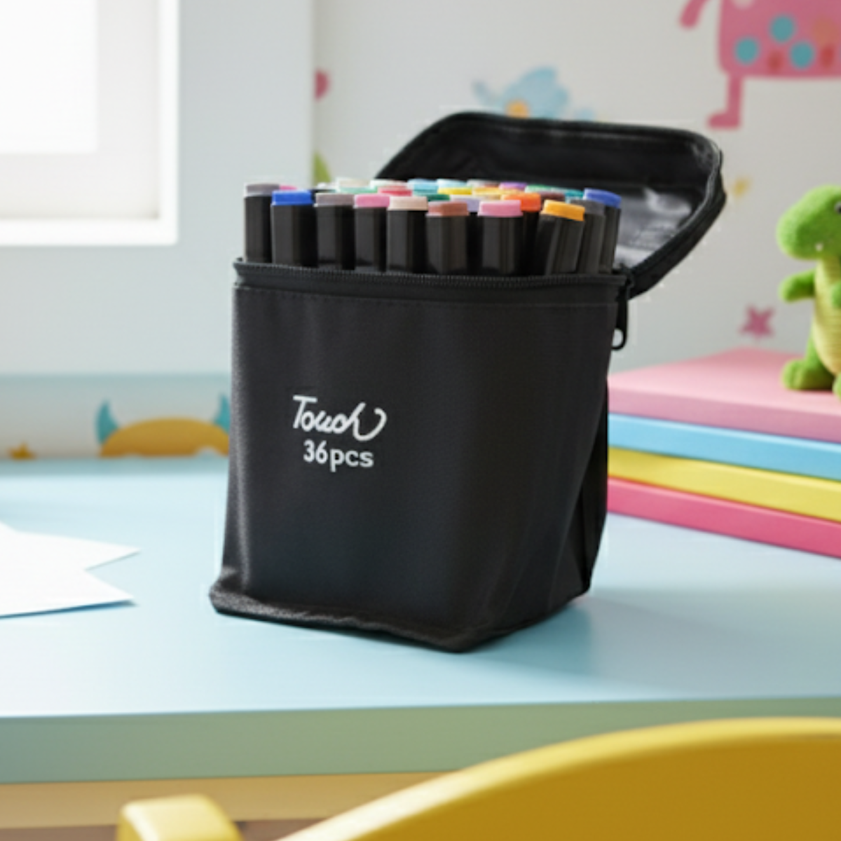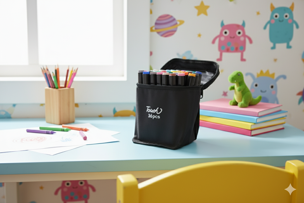 - Estojo Prático: Acompanha uma bolsa de transporte resistente e organizada, perfeita para levar seu kit para qualquer lugar e manter suas canetinhas sempre protegidas.