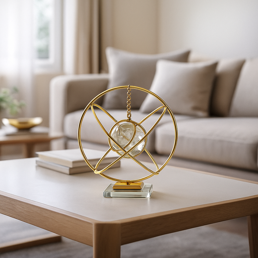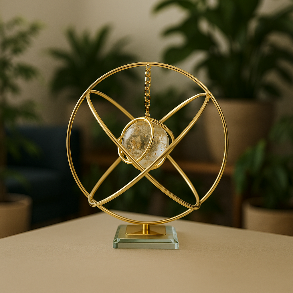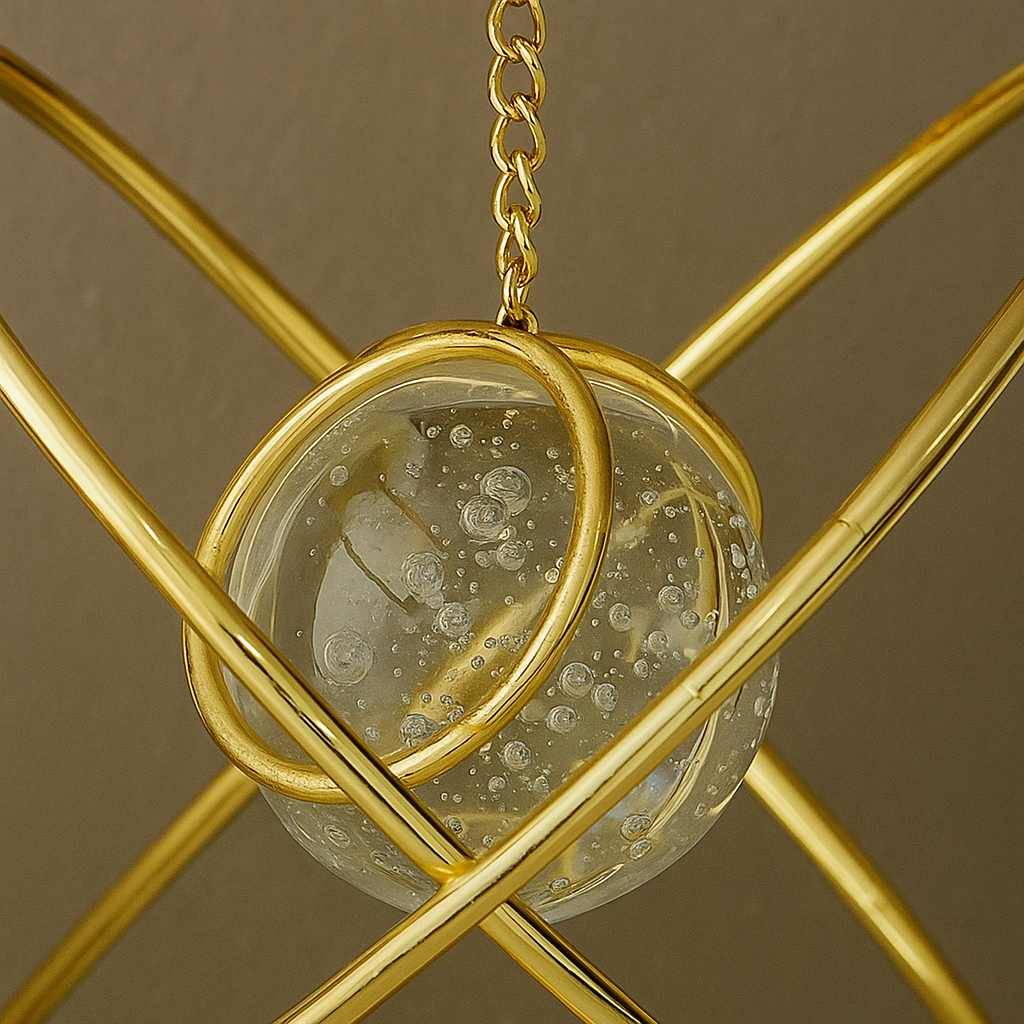 A Esfera decorativa de Ferro Dourada com Centro de Vidro traz sofisticação e charme para qualquer ambiente, oferecendo um toque moderno de decoração com sua estrutura metálica dourada e núcleo de vidro texturizado. A Esfera decorativa de Ferro Dourada Ideal para compor estantes, aparadores e mesas de centro, este objeto decorativo une resistência do metal com a leveza e brilho do vidro, criando um efeito visual elegante. Seu design geométrico possibilita harmonização em estilos contemporâneos, minimalistas ou clássicos, valorizando a composição do espaço.