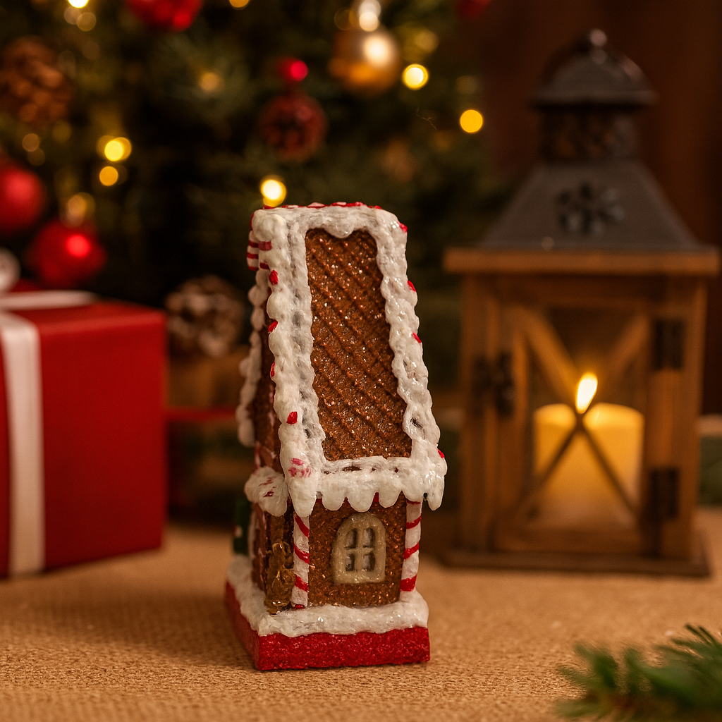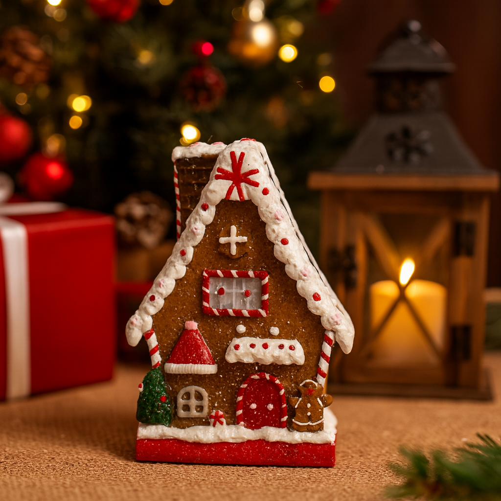 Encante sua decoração natalina com a Casinha Gingerbread de Resina, uma peça charmosa e cheia de detalhes que remetem à doçura e ao aconchego do Natal. Inspirada nas tradicionais casas de biscoito de gengibre, esta casinha combina textura realista, acabamento artesanal e cores vibrantes que tornam qualquer ambiente mais festivo e acolhedor.