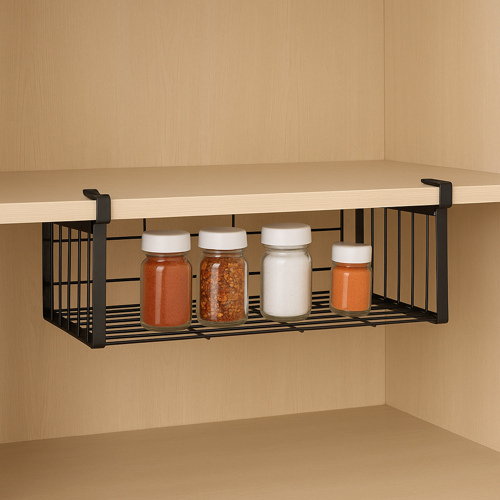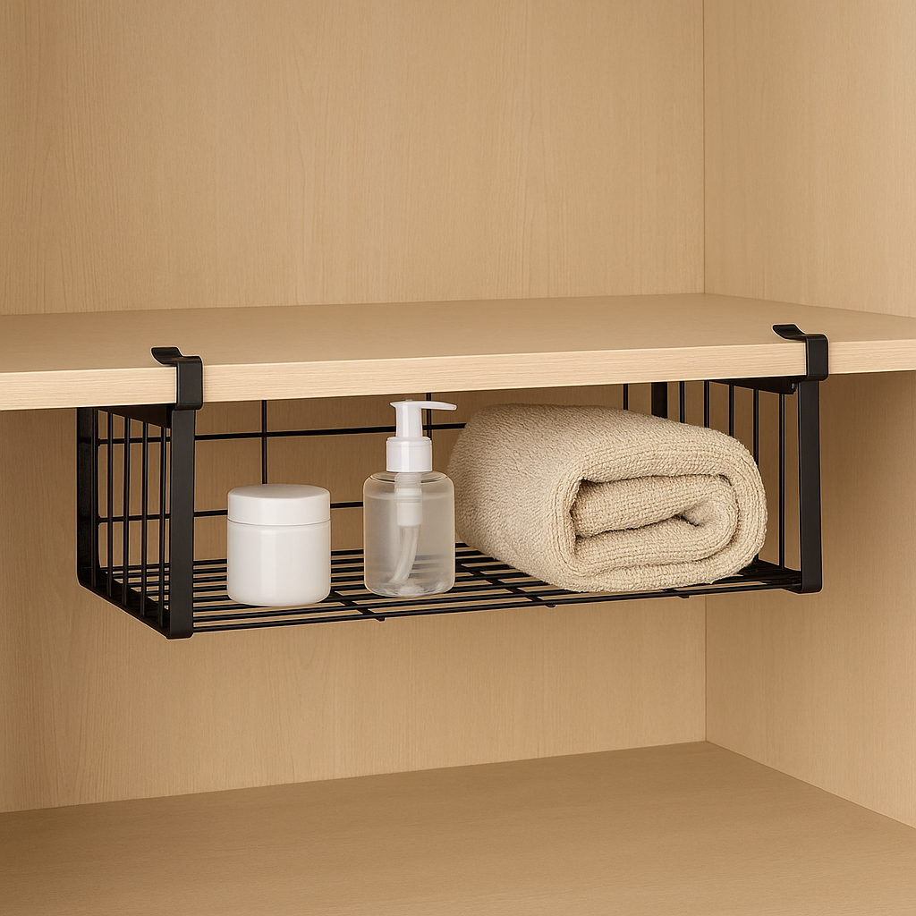 Seu sistema de encaixe simples e sem necessidade de furos ou ferramentas torna a instalação extremamente fácil. Basta posicionar o cesto sob a prateleira para criar um novo compartimento de armazenamento instantaneamente. Ideal para guardar utensílios de cozinha, mantimentos, produtos de limpeza, toalhas, roupas dobradas, papéis ou pequenos objetos, o Cesto Aramado Cestex aproveita o espaço vertical, evitando a desorganização e maximizando cada centímetro disponível.