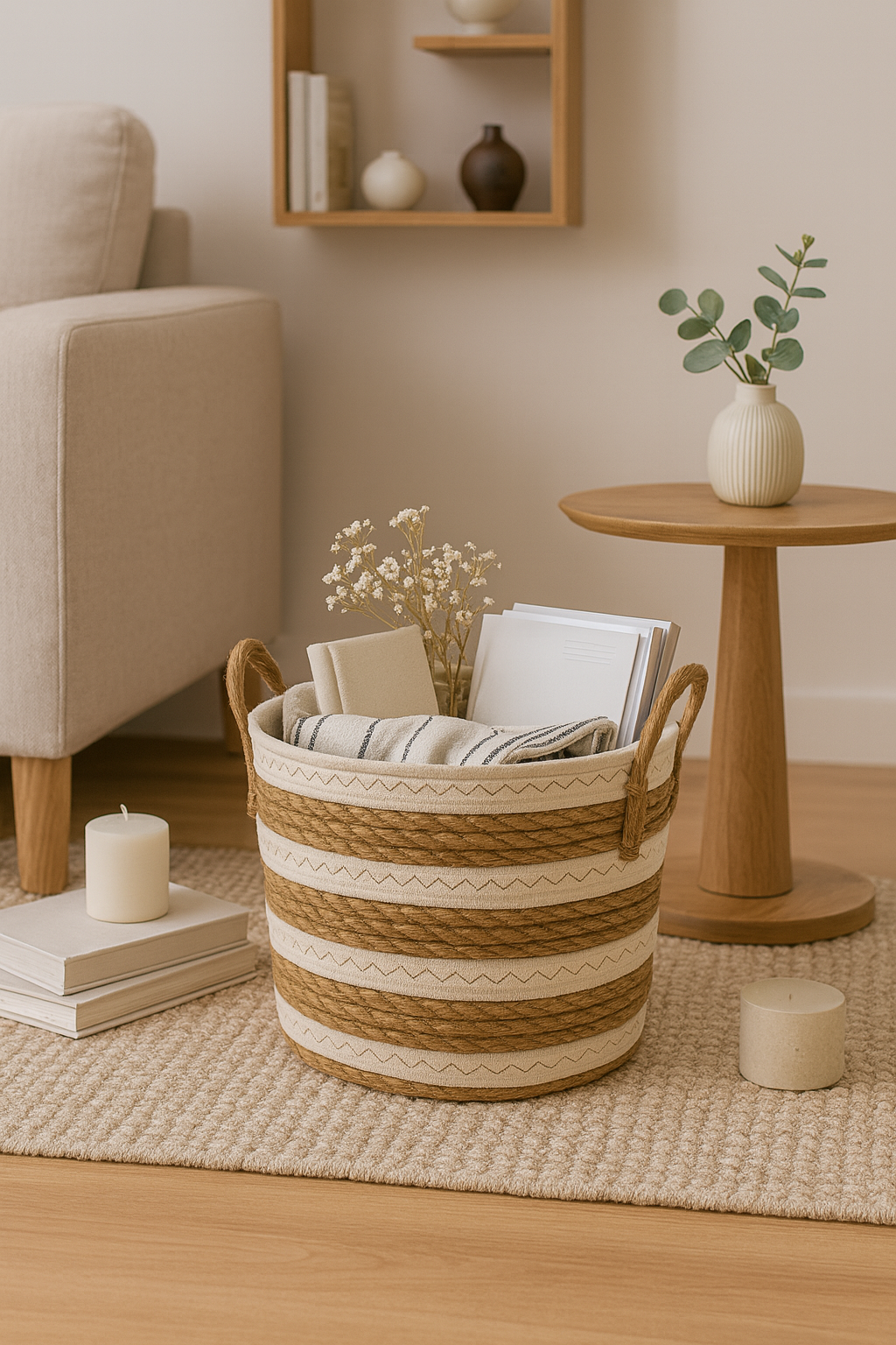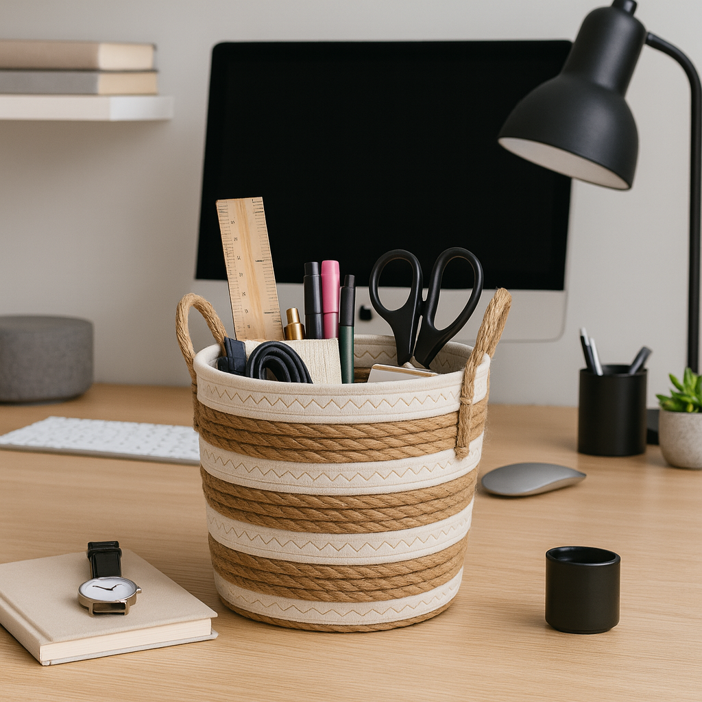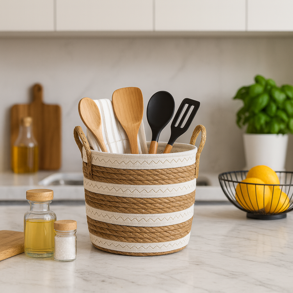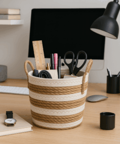 Cesto de Palha com Alça Multiuso 23x26cm
