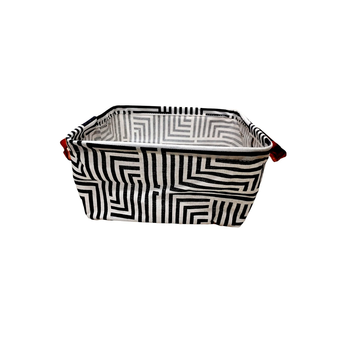 O corpo do cesto é revestido com tecido impermeável, que protege os objetos armazenados contra umidade, respingos ou sujeiras. As alças e a estrutura são feitas com polipropileno resistente, garantindo durabilidade e conforto no manuseio;