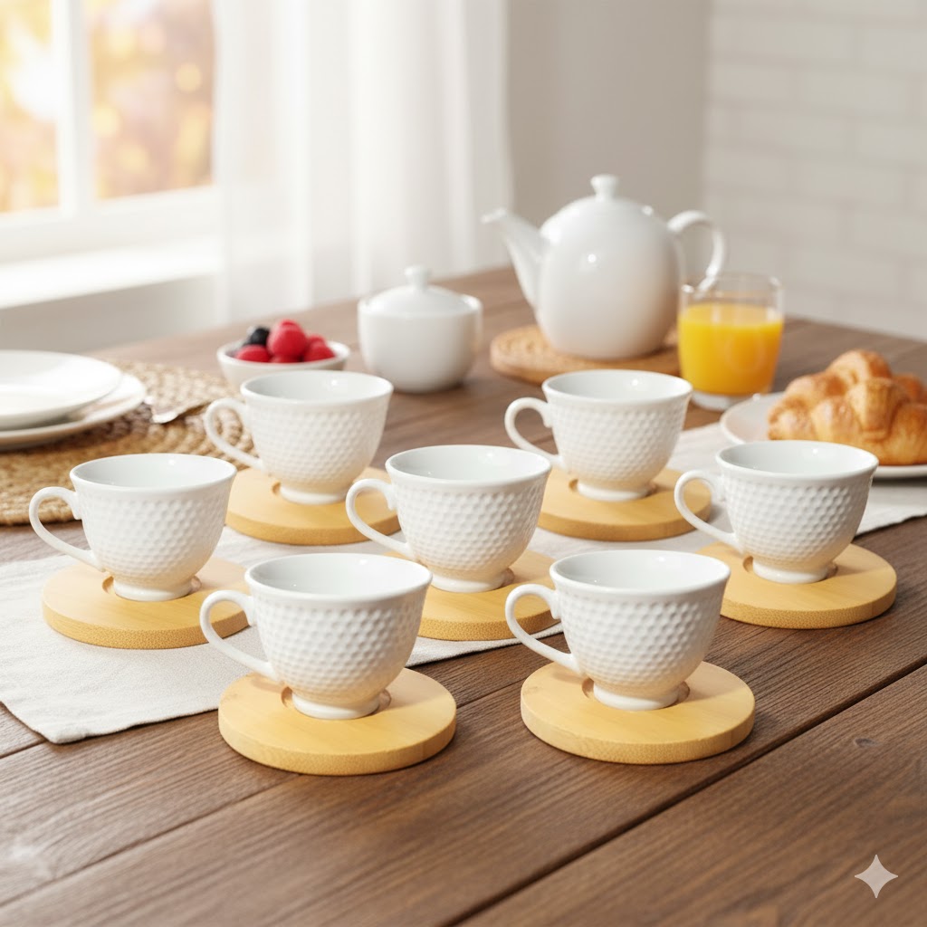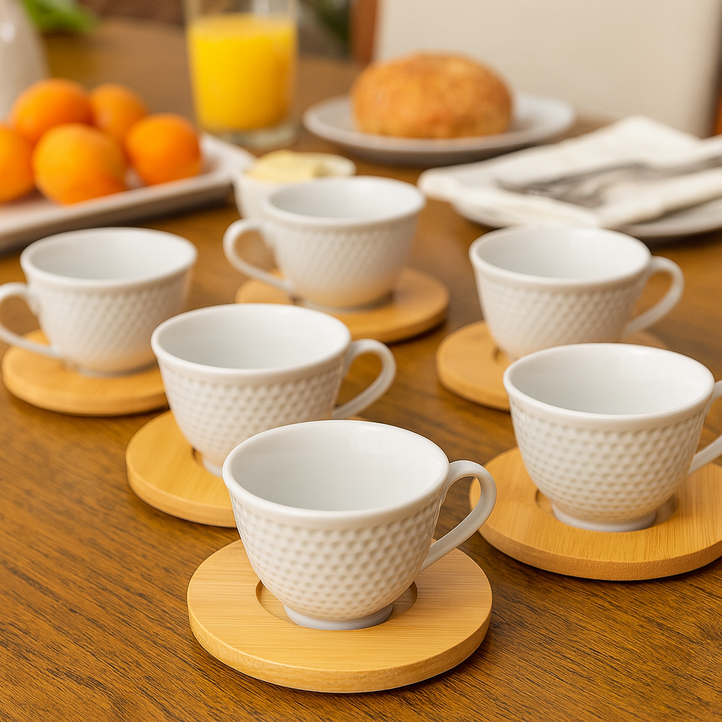 Transforme seus momentos de café em uma experiência única com o Conjunto de Xícaras com Pires Bambu Vivace 12 Peças 100ml. Perfeito para quem valoriza elegância, praticidade e um toque de natureza à mesa, este conjunto foi desenvolvido para impressionar em qualquer ocasião — do café da manhã ao encontro com amigos.