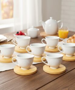 Com capacidade de 90ml, as xícaras são ideais para servir café expresso, cappuccino ou chá em porções equilibradas, preservando o sabor e a temperatura da bebida por mais tempo. O pires acompanha cada xícara, proporcionando segurança e um toque clássico ao servir. O conjunto contém 12 peças, sendo 6 xícaras e 6 pires, ideal para o uso diário ou para compor sua mesa posta em momentos especiais.
