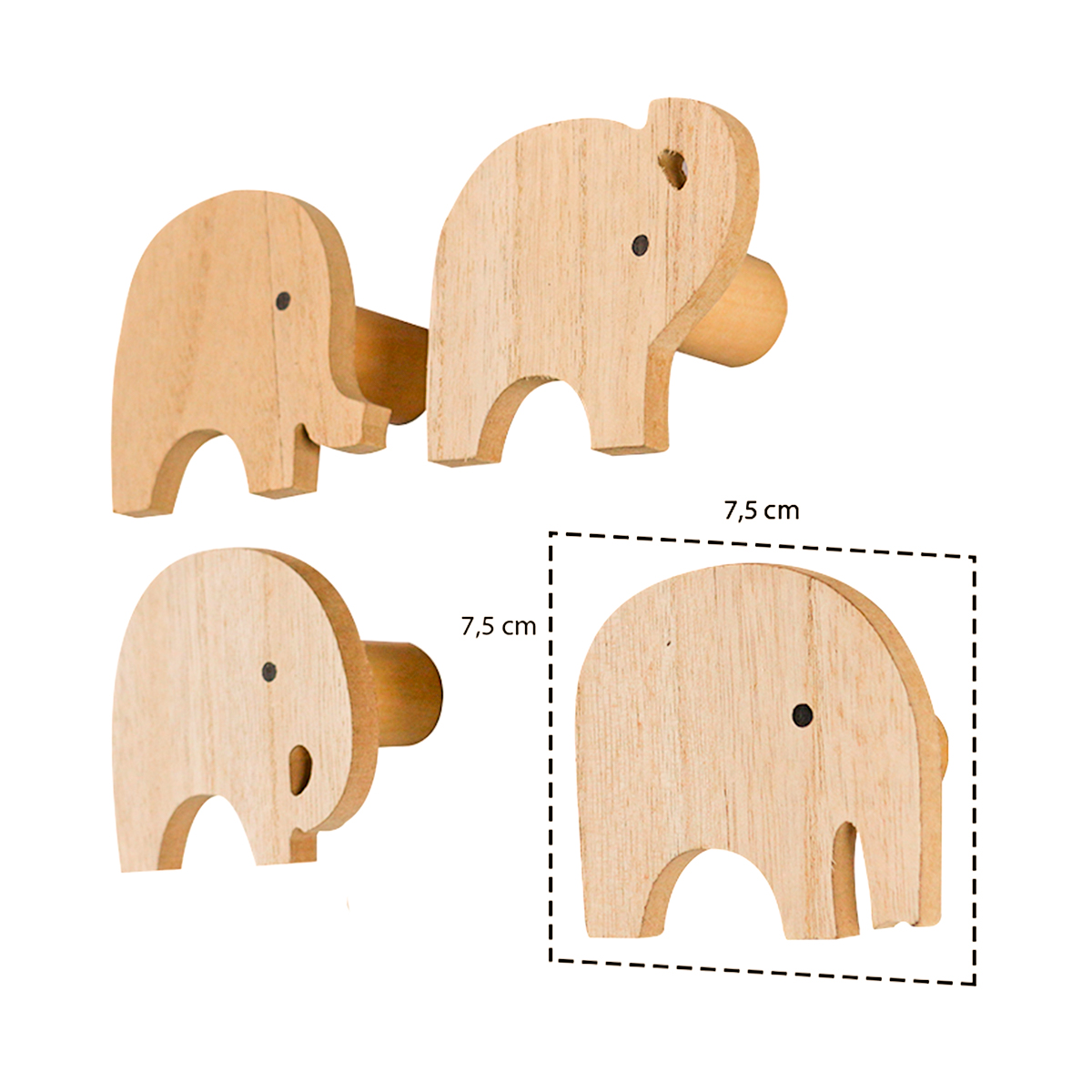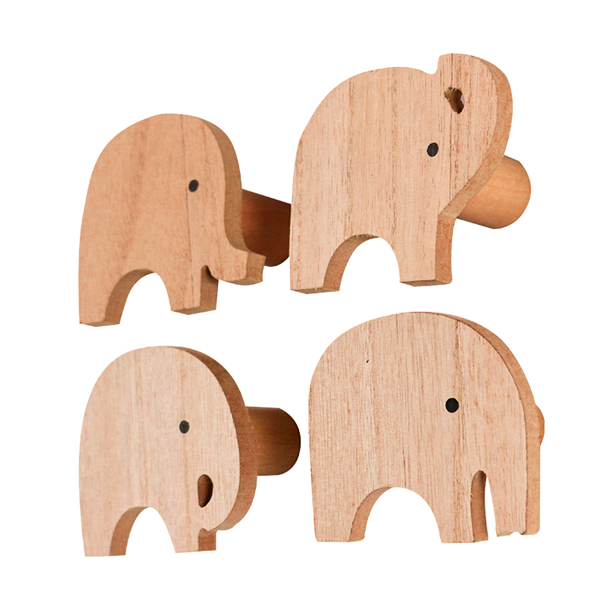 Cabide de Madeira Parede 4 Peças Elefante