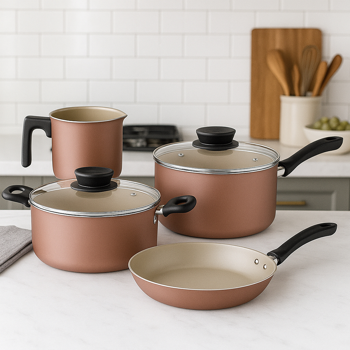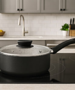 Todas as peças contam com cabos e alças antitérmicos, que tornam o manuseio mais seguro. Compatíveis com fogões a gás, elétricos e vitrocerâmicos, oferecem versatilidade para diversos tipos de cozinha.