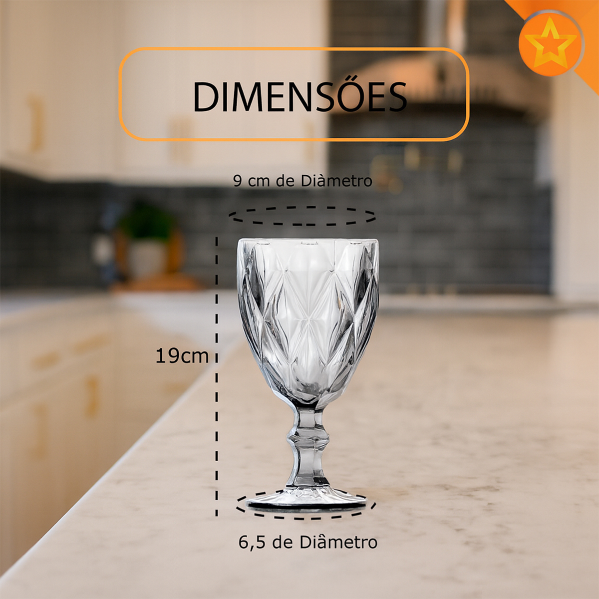 Jogo de 6 Taças de Vidro Diamante 300ml Livon