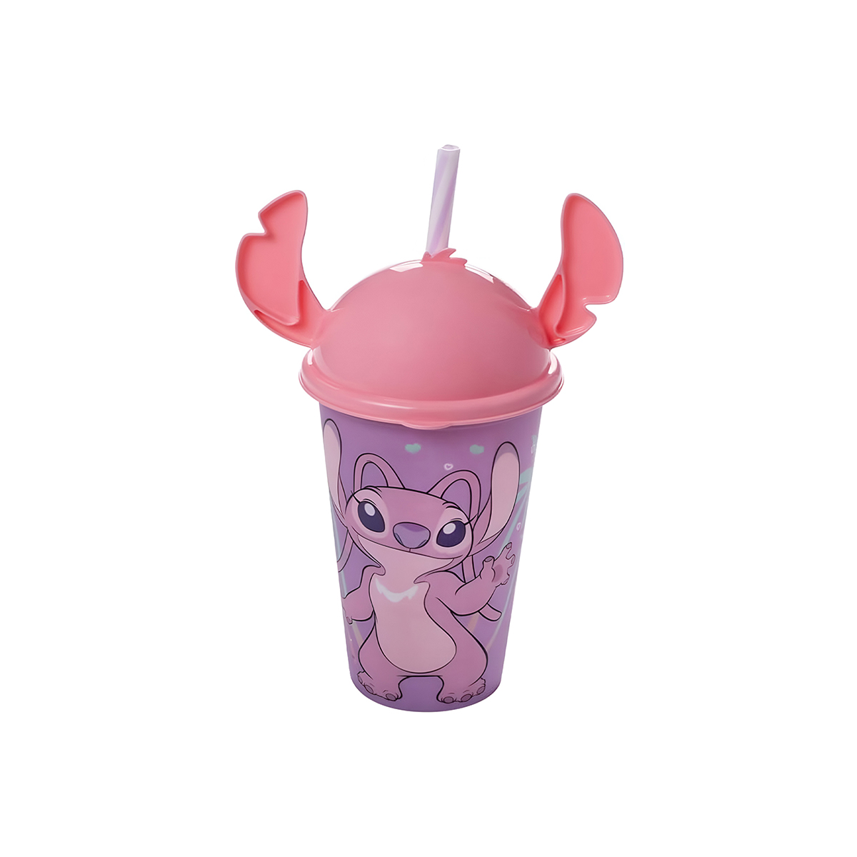 Copo Stitch ou Angel com Tampa e Canudo 500ml Plasútil