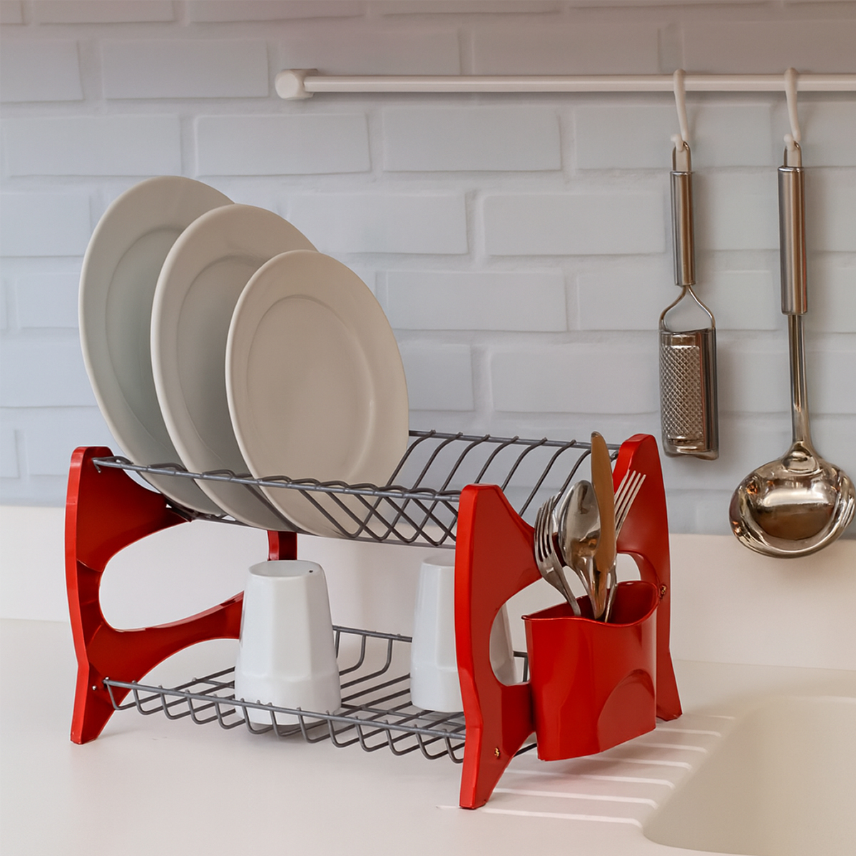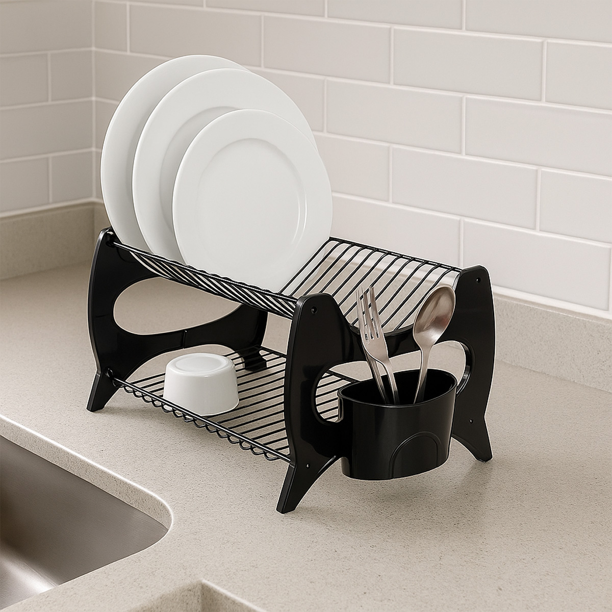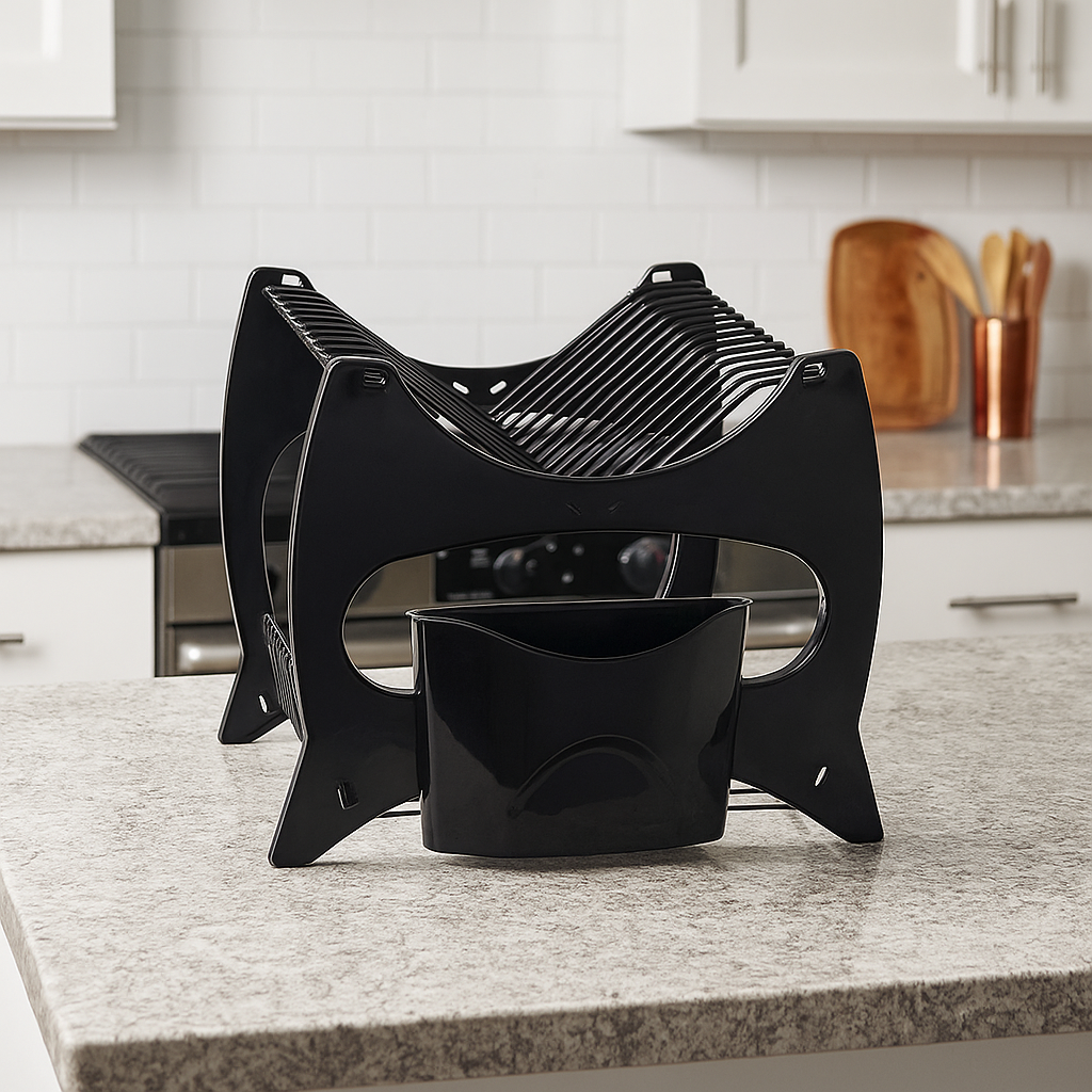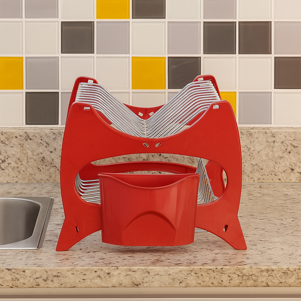 Escorredor de Louça com Porta Talheres é a solução perfeita para quem busca praticidade, capacidade e organização na rotina, oferecendo estrutura resistente, duas prateleiras espaçosas e suporte para talheres integrado. Fabricado em plástico reforçado e aço cromado, garante durabilidade, estabilidade e secagem eficiente de pratos, copos e utensílios. Seu design moderno, disponível nas cores preto e vermelho, facilita a acomodação de até 13 pratos, otimizando o espaço da pia e proporcionando um visual elegante e funcional, ideal para cozinhas compactas ou amplas que necessitam de um Escorredor resistente e versátil com Escorredor de Louça com Porta Talheres.