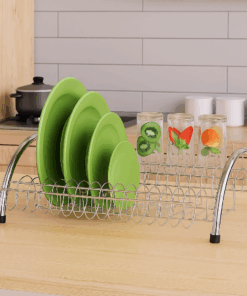 Produto de extrema qualidade e durabilidade o escorredor de louça é feito inteiramente em aço inoxidável, conseguindo armazenar 11 pratos e 5 copos deixa-los alinhados facilitando um processo cansativo, por ser inteiramente de aço inoxidável o escorredor não ocorre o risco de enferrujar.