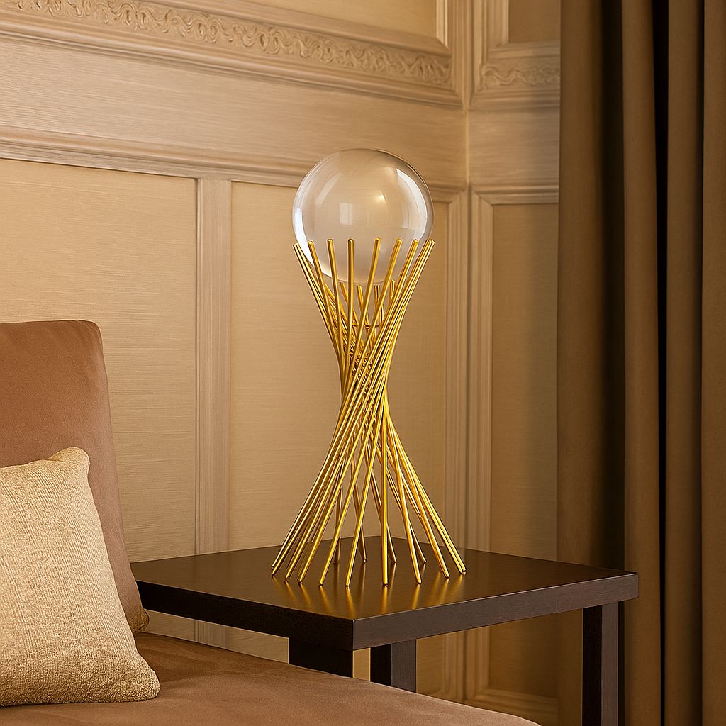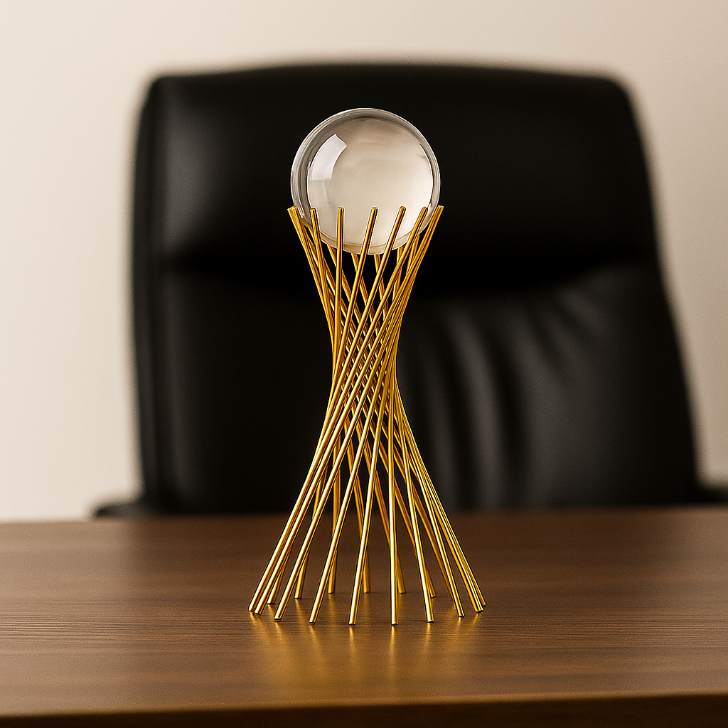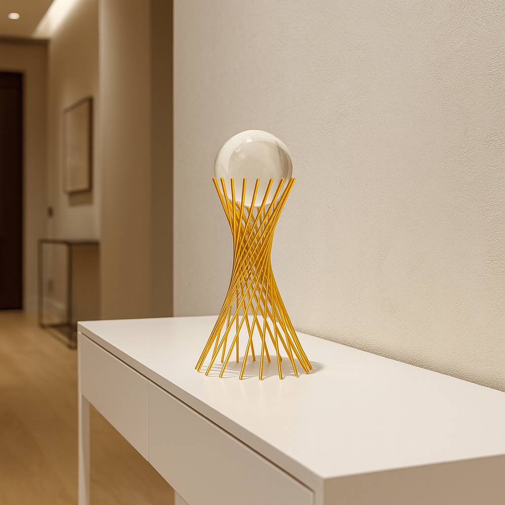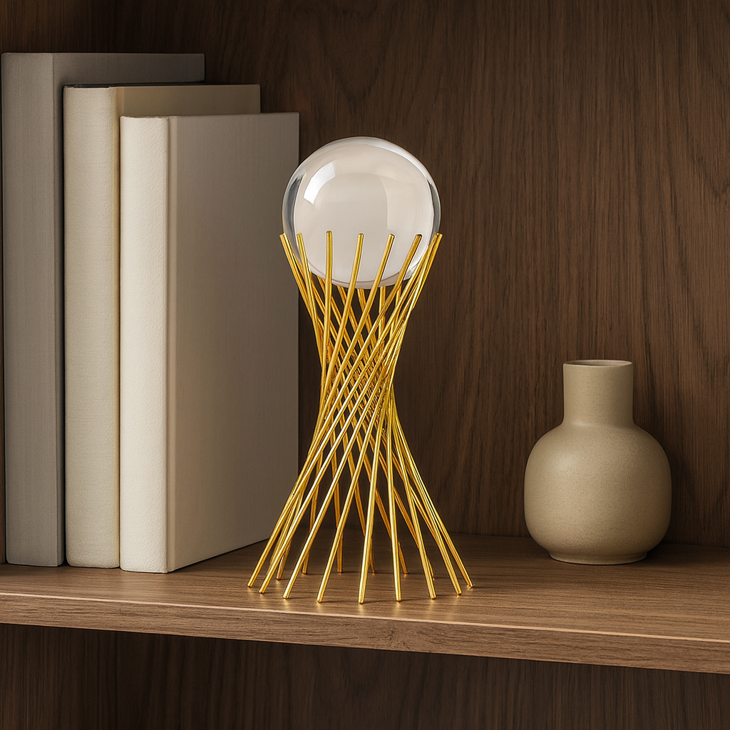 A Escultura Decorativa Dourada com Esfera de Vidro é a peça perfeita para transformar ambientes com elegância, unindo arte, sofisticação e funcionalidade em um único objeto de decoração. Com design moderno que combina linhas metálicas douradas em espiral e uma esfera de vidro superior, o item adiciona brilho, leveza e presença visual. Ideal para salas, escritórios, aparadores ou mesas laterais, sua estrutura resistente e acabamento premium garantem durabilidade, enquanto o visual artístico valoriza qualquer composição, seja minimalista ou contemporânea.