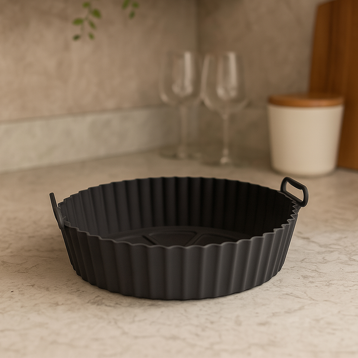 Forma Air Fryer Redonda Preta: Versatilidade e praticidade para transformar sua Air Fryer em um forno completo.