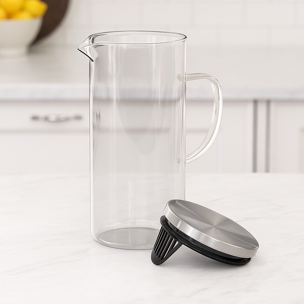 Com design moderno e minimalista, é perfeita para servir sucos, chás, água aromatizada, cafés gelados e outras bebidas com elegância, seja em casa, no trabalho ou em ocasiões especiais com amigos e familiares.