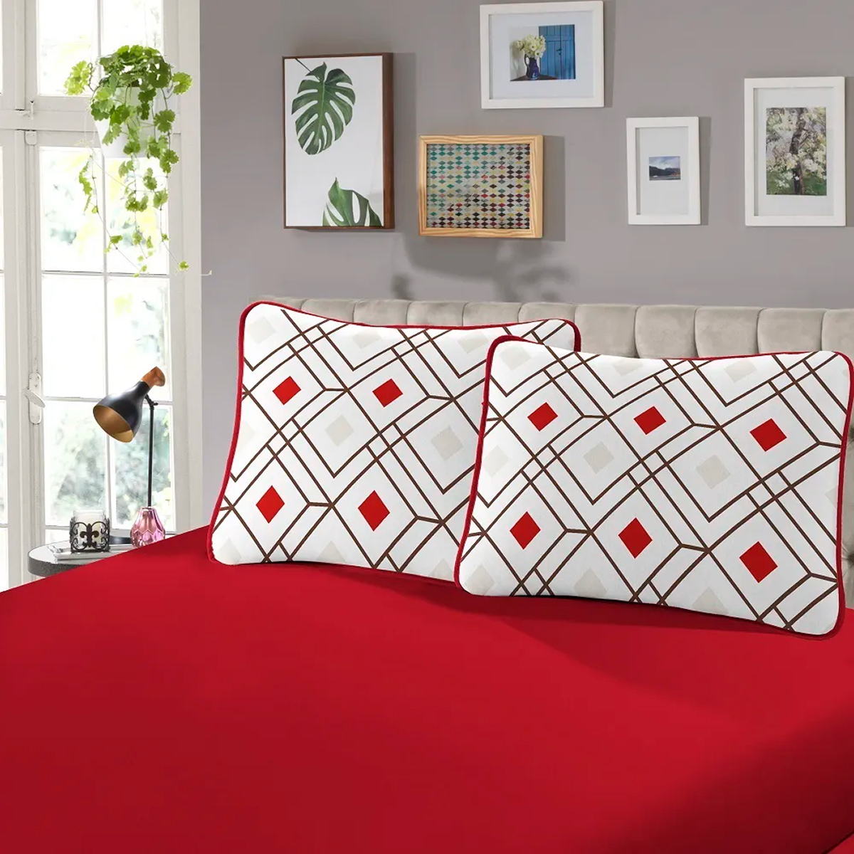 Renove o visual do seu quarto e tenha noites mais aconchegantes com o Jogo de Cama Casal Rubi da SBX. Composto por 3 peças essenciais, ele é fabricado com tecido de alta qualidade, que proporciona toque suave, resistência e um excelente caimento sobre a cama;