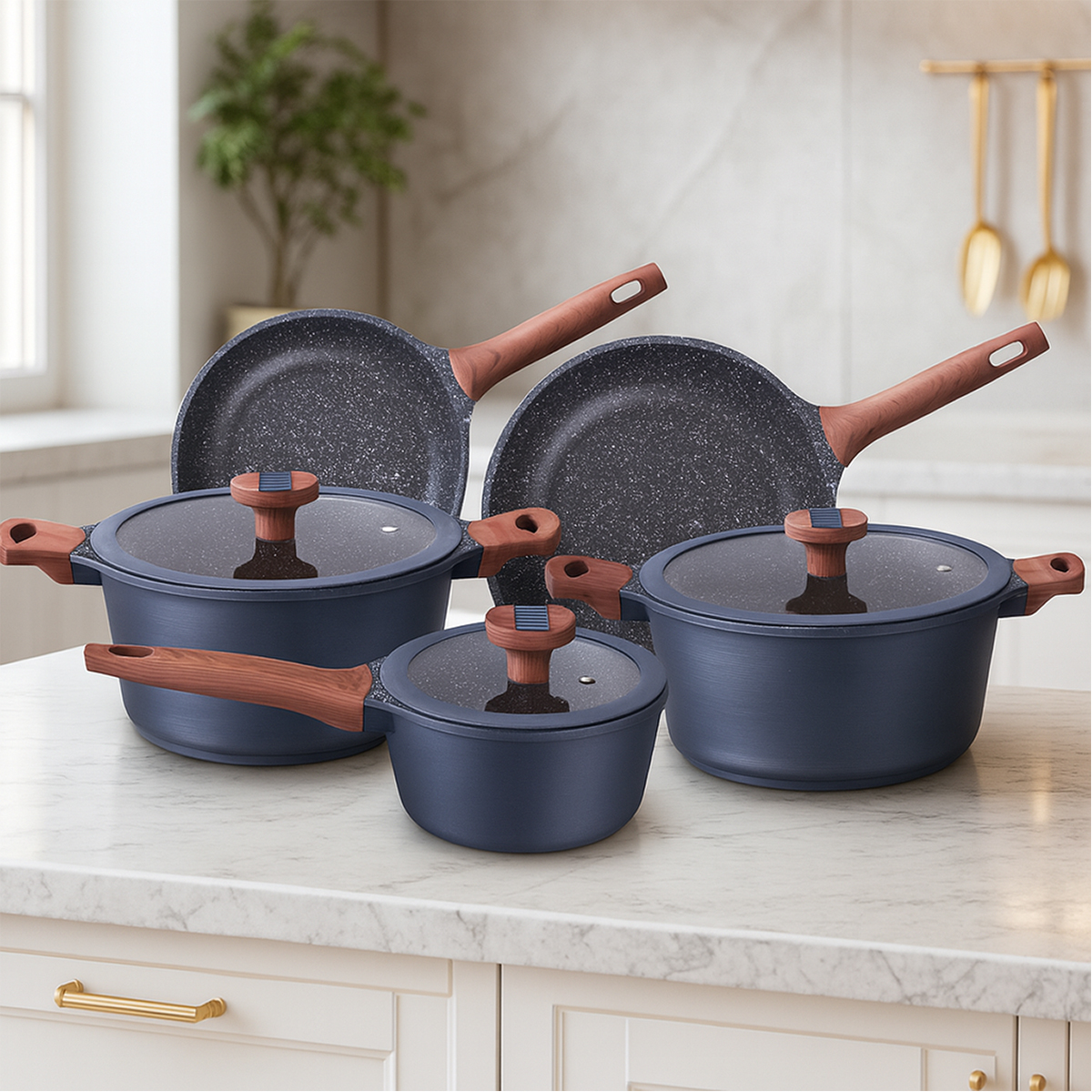 O alumínio injetado confere ao conjunto uma estrutura robusta, que evita deformações mesmo após uso intenso. Além disso, o jogo é compatível com fogões a gás, elétricos e vitrocerâmicos (exceto por indução), oferecendo versatilidade no dia a dia.