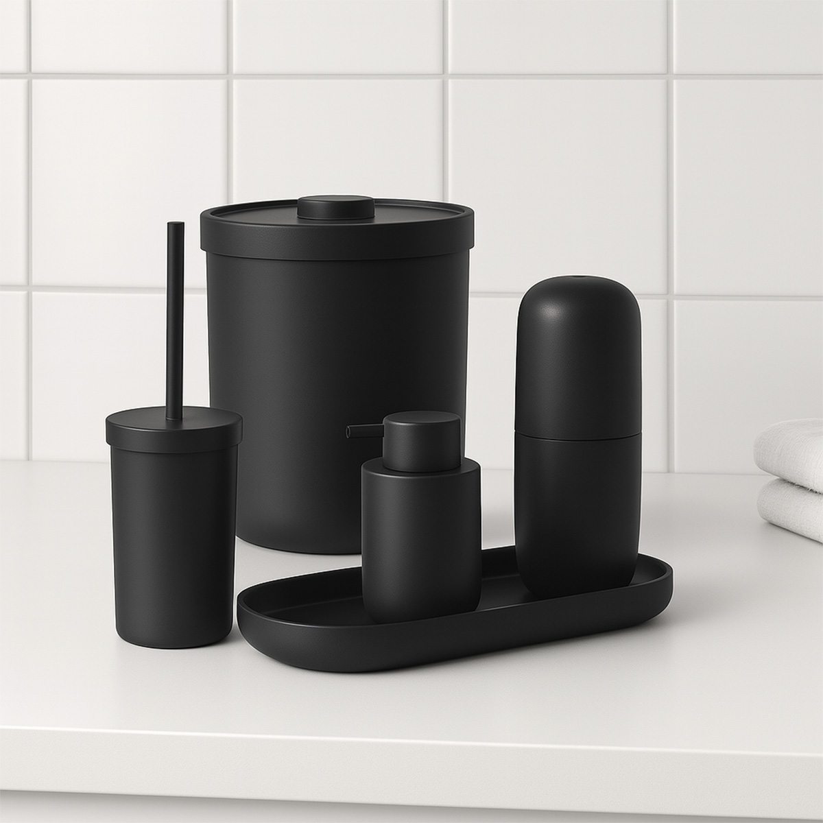 Kit Banheiro Completo 5 Peças OU – Conjunto funcional com design moderno para deixar seu banheiro elegante, organizado e prático no dia a dia.