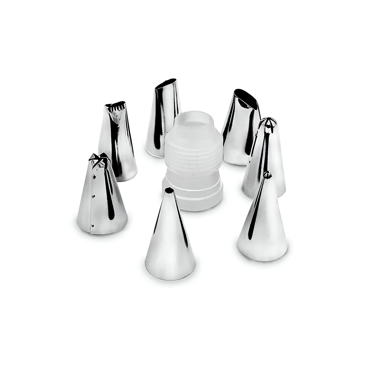 Bicos Inox para Confeitar – Kit com 7 Peças e Adaptador Prático