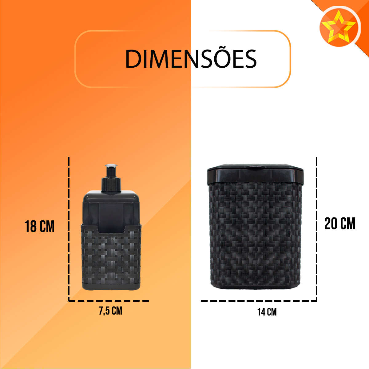 - Dimensões: 18 cm x 17 cm x 20 cm