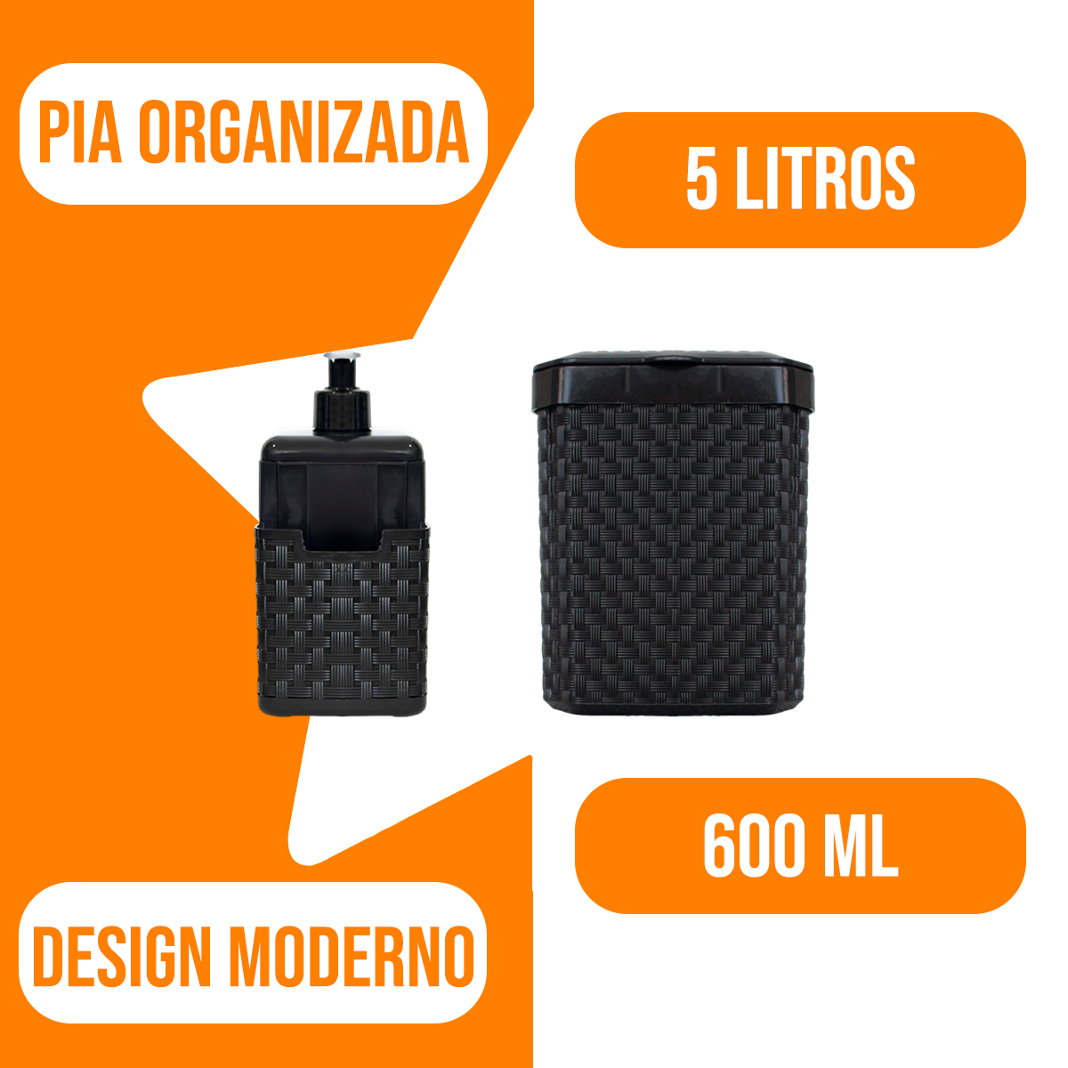 Este organizador é essencial para uma cozinha prática e elegante. Com acabamento em rattan preto, combina facilmente com diferentes decorações. O bico dosador integrado oferece maior controle na aplicação do detergente, evitando desperdícios e promovendo economia. Além disso, mantém o detergente e a esponja sempre ao alcance, facilitando as tarefas diárias.