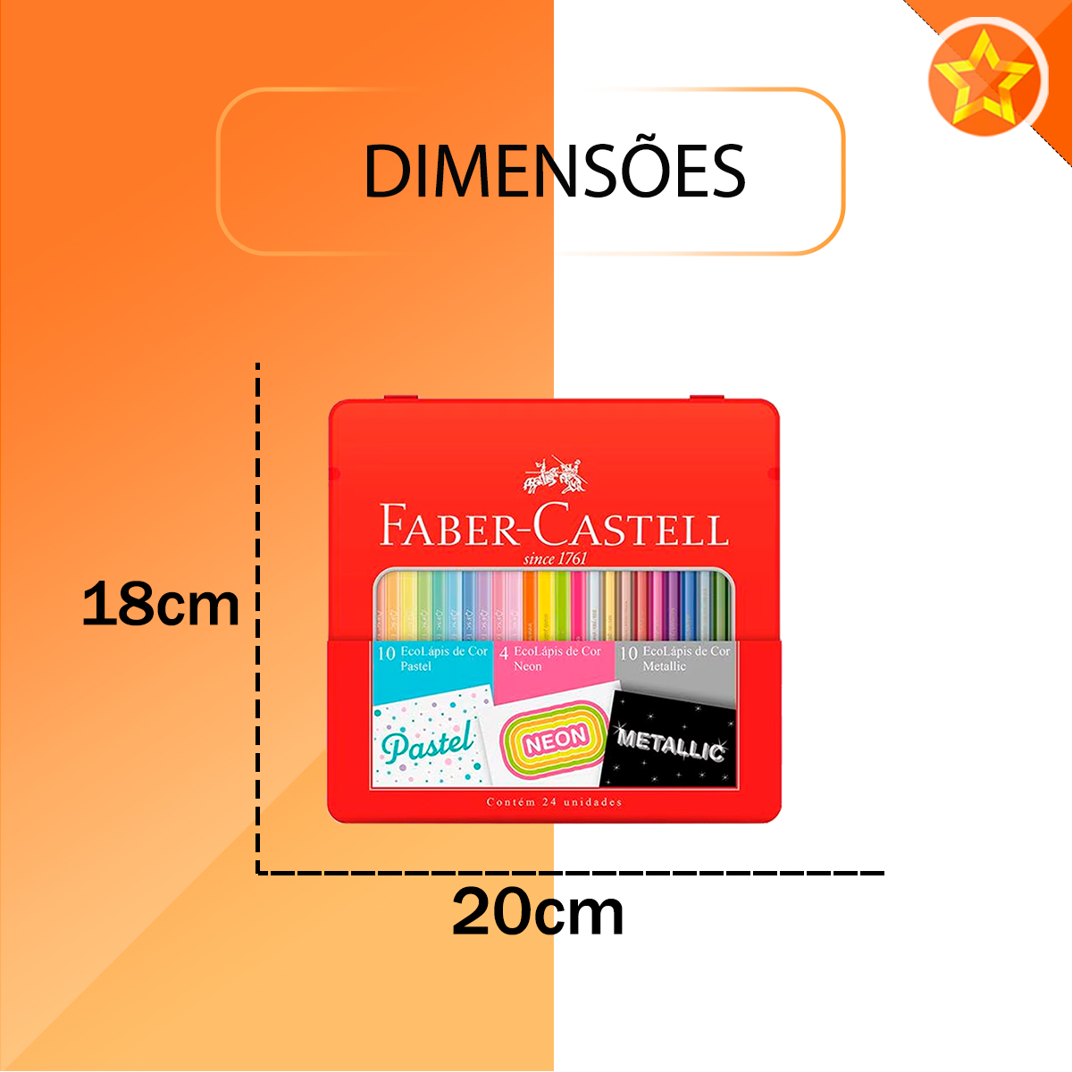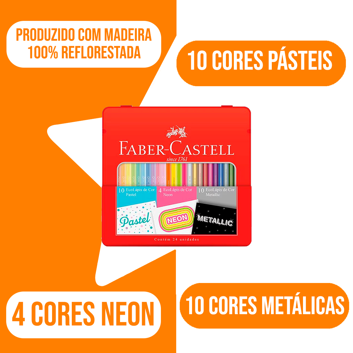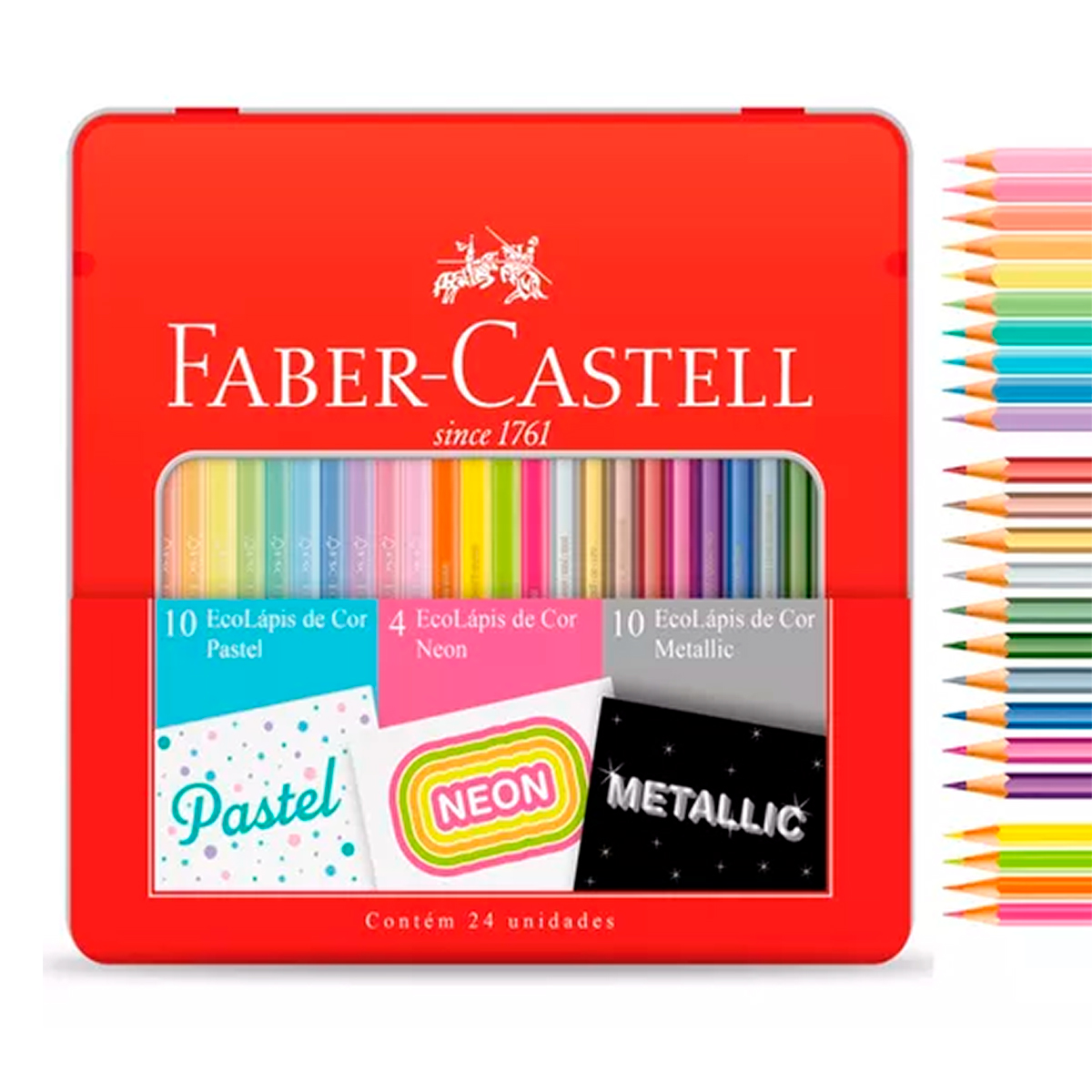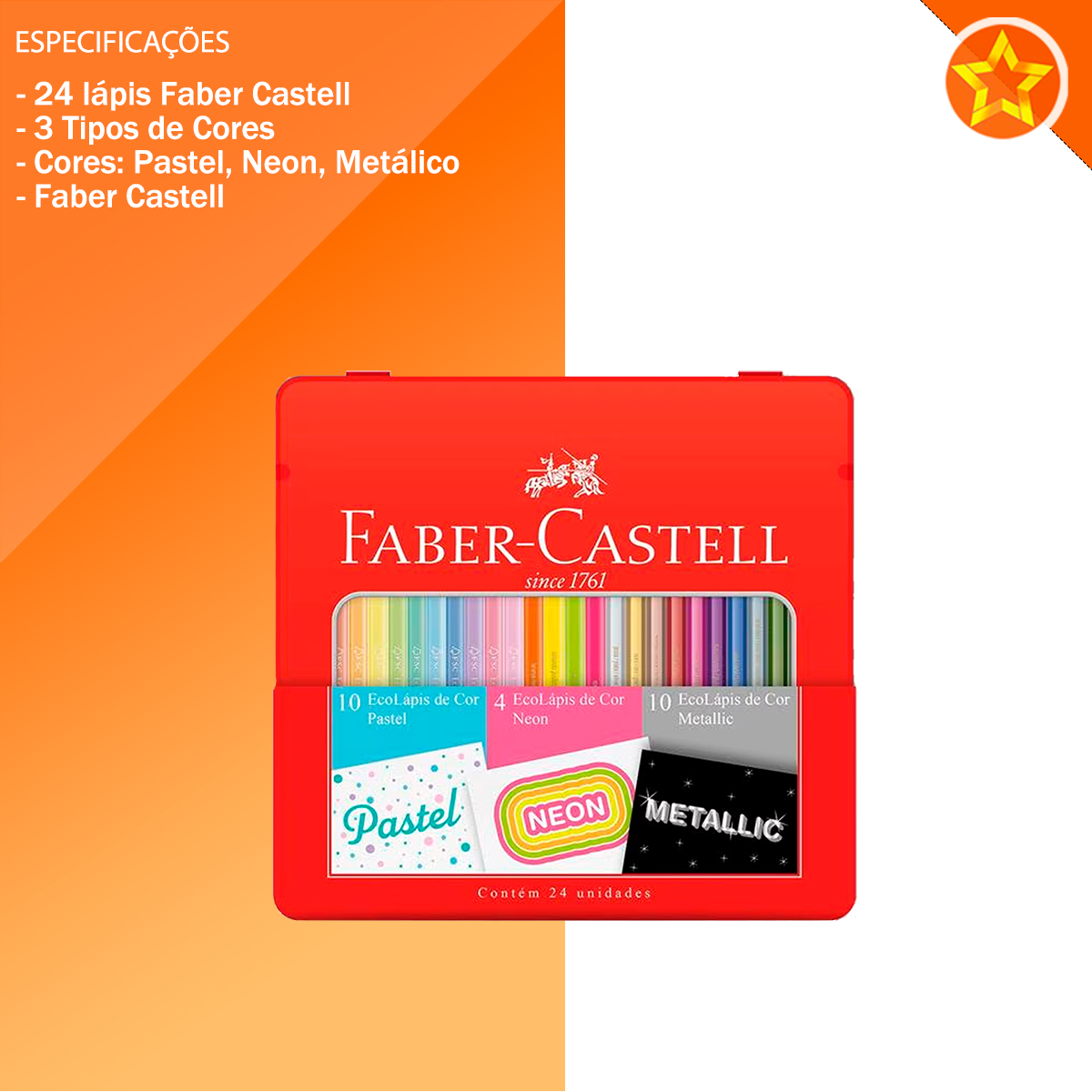 LÁPIS DE COR 24 CORES PASTEL, NEON E METÁLICO – FABER CASTELL