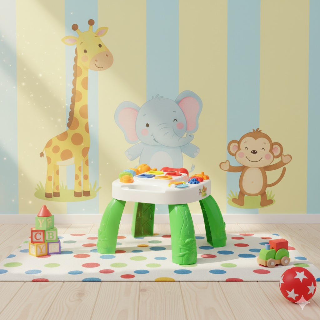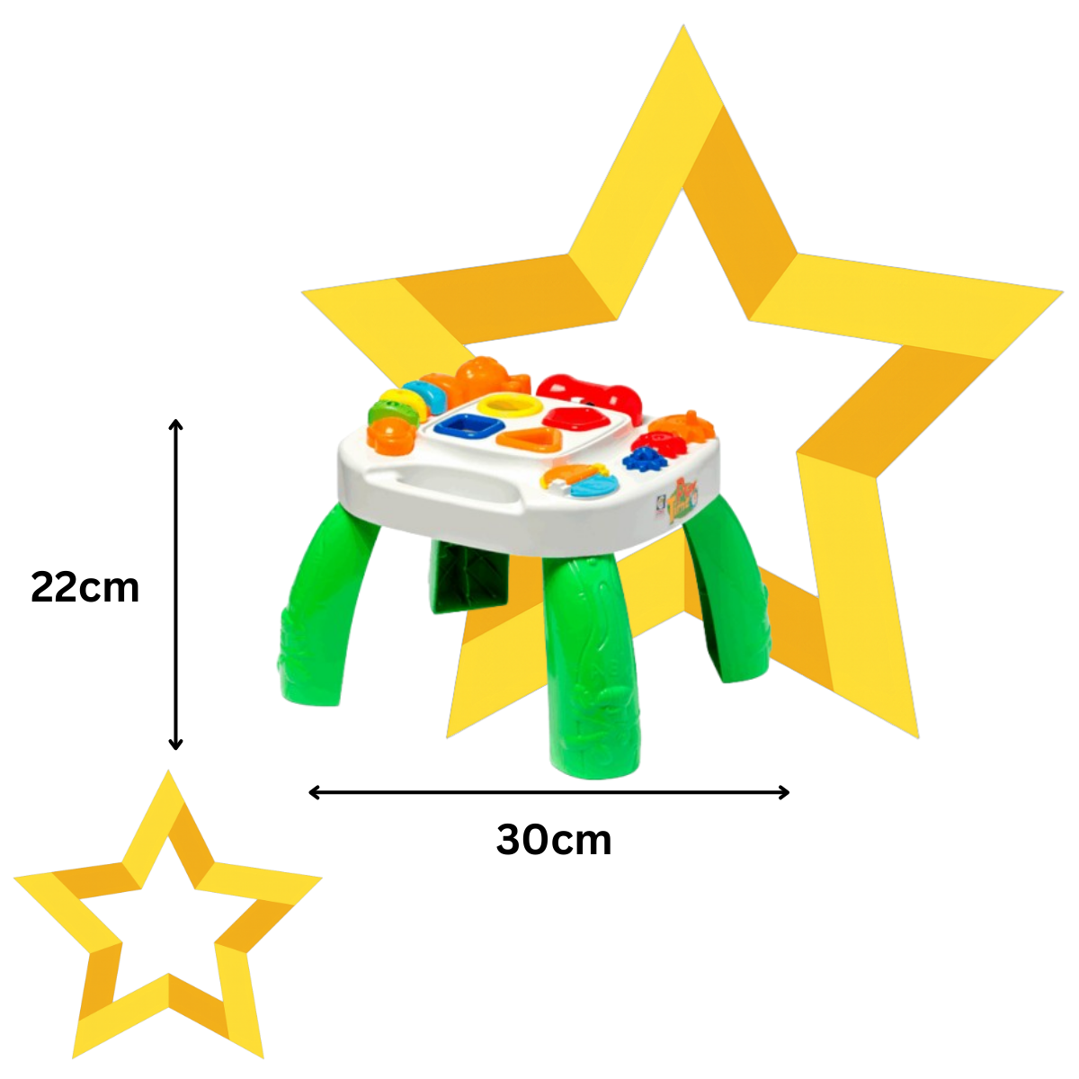 Design pensado para crianças pequenas, facilitando o manuseio e incentivando descobertas da mesinha.