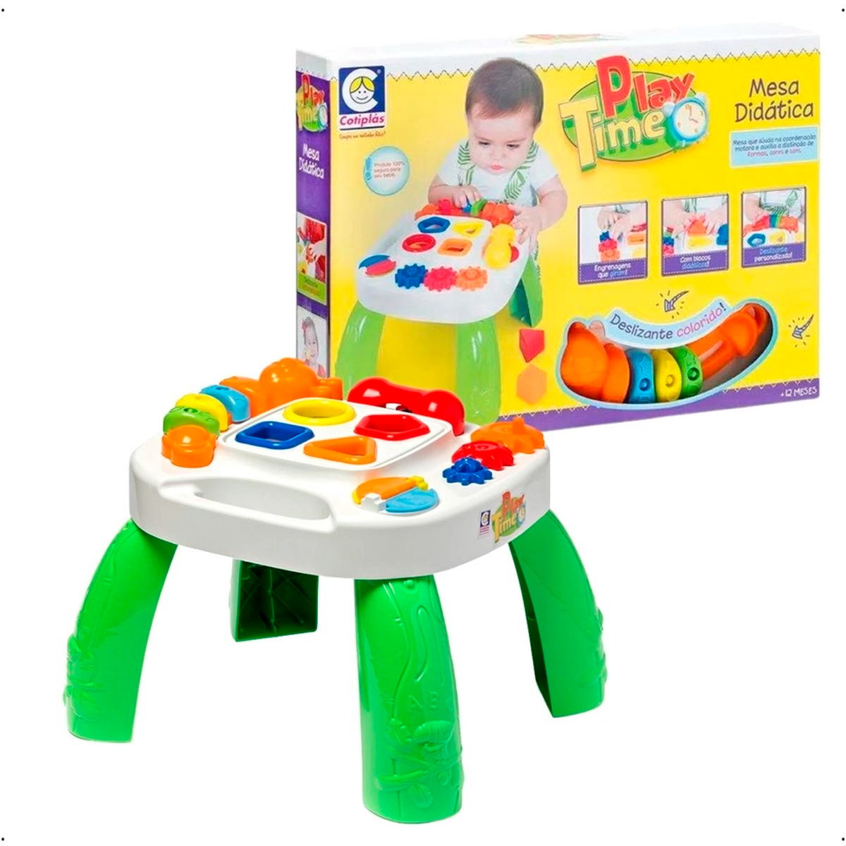 Brinquedo didático com múltiplas atividades que estimulam habilidades motoras Mesa Recreativa Divertida Didática.