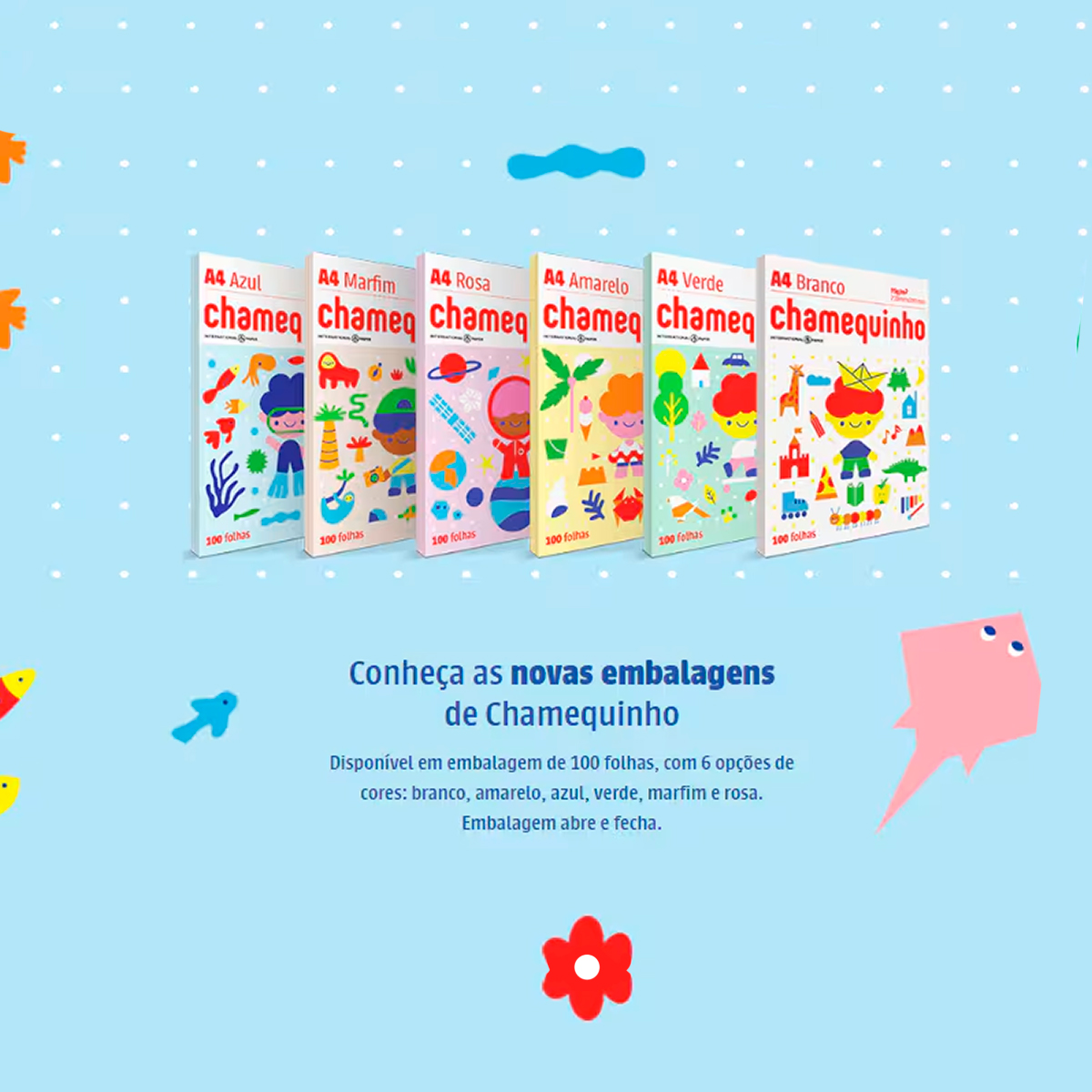Solte a criatividade com o Chamequinho, o papel sulfite colorido que transforma qualquer atividade escolar em uma festa! Produzido com fibras de florestas 100% plantadas e renováveis, o Chamequinho é a escolha perfeita para quem busca qualidade e sustentabilidade. Disponível em 6 cores vibrantes, ele estimula a imaginação e torna o aprendizado ainda mais divertido.