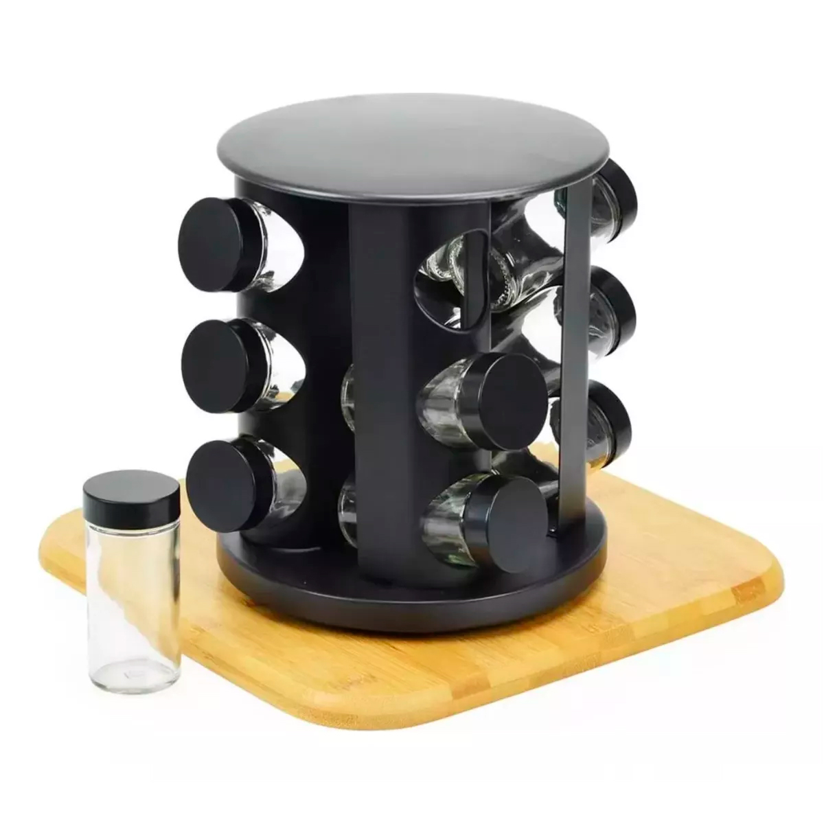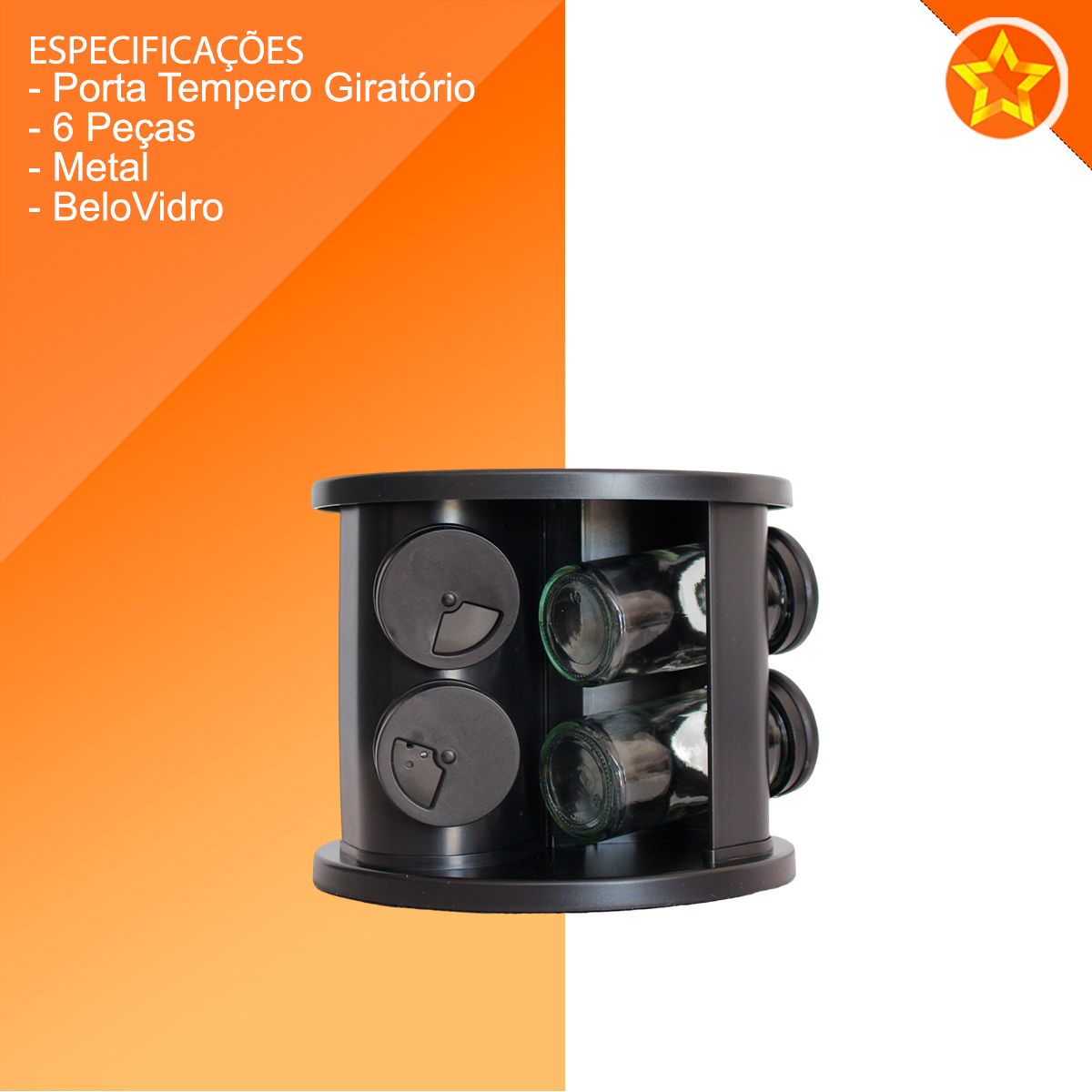 Porta Condimento Giratório com 6 Potes: 1 suporte giratório + 6 potes de vidro com tampa