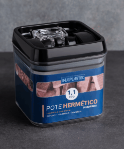 Seu sistema hermético com tampa de vedação eficiente garante que alimentos como cereais, biscoitos, grãos e diversos mantimentos permaneçam frescos por muito mais tempo. Com design moderno, formato quadrado e acabamento de qualidade, o pote se encaixa perfeitamente em prateleiras e gavetas, otimizando espaço.