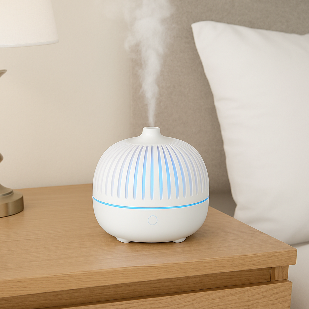 Esse umidificador ajuda a manter o equilíbrio da umidade do ar, reduzindo o ressecamento da pele, garganta e vias respiratórias — especialmente em dias frios ou com o ar-condicionado ligado. Ao adicionar algumas gotas do seu óleo essencial favorito, você transforma o ambiente em um espaço de aromaterapia, promovendo relaxamento e tranquilidade.