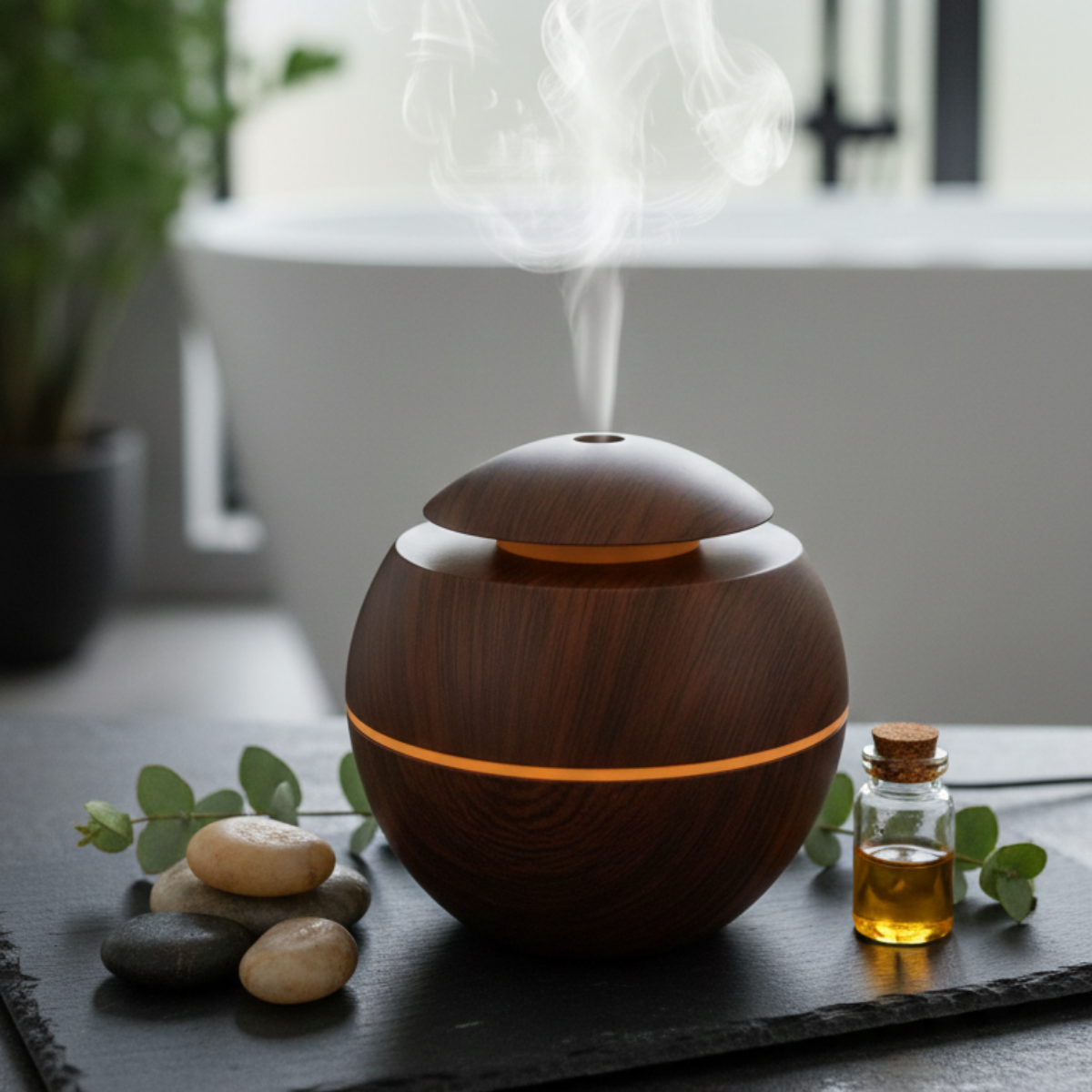 Umidificador de Ar Ultrassónico com Touch com design arredondado elegante que combina com qualquer decoração