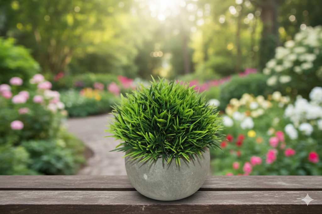 Vaso de Cerâmica com Grama que mantém a beleza verde o ano inteiro sem cuidados.