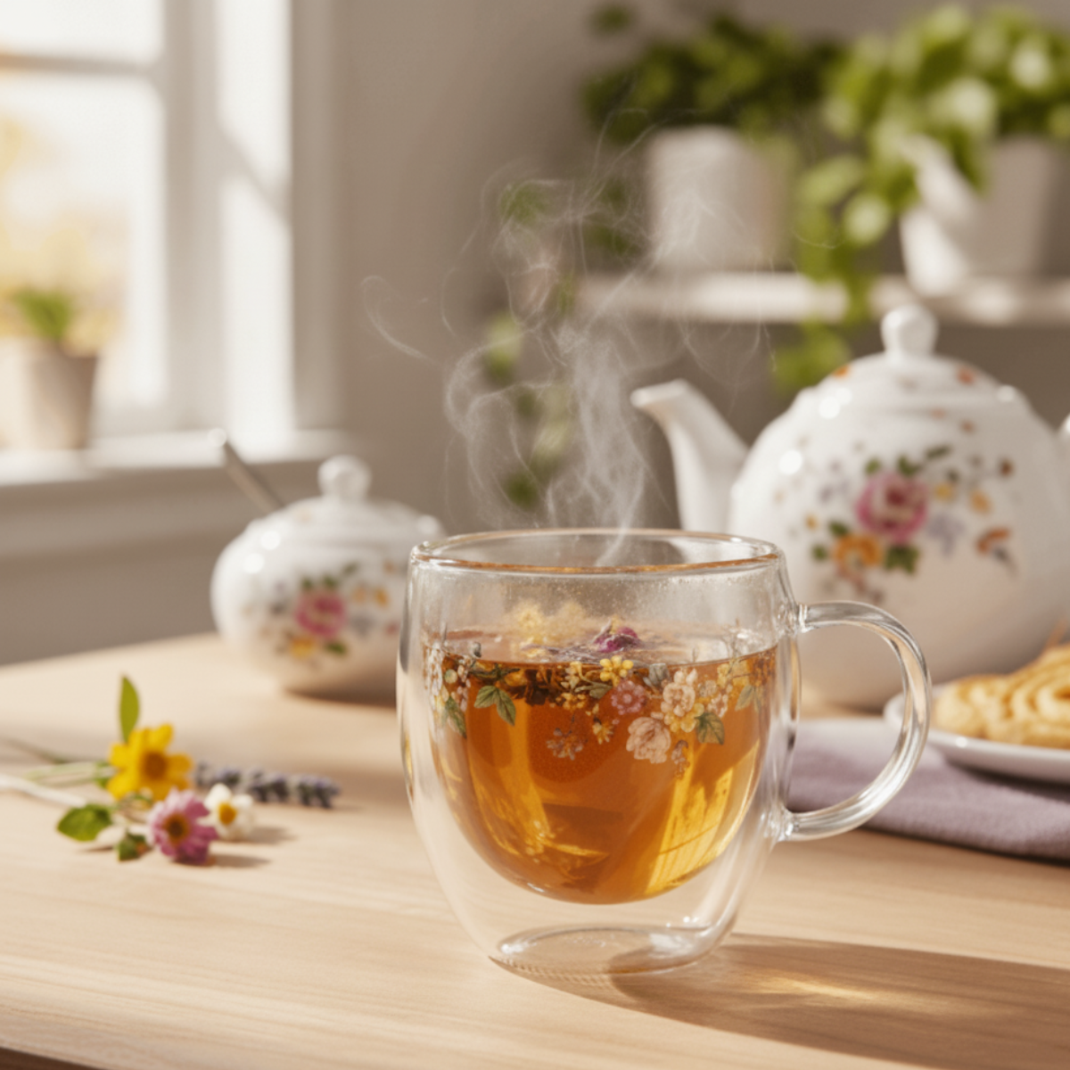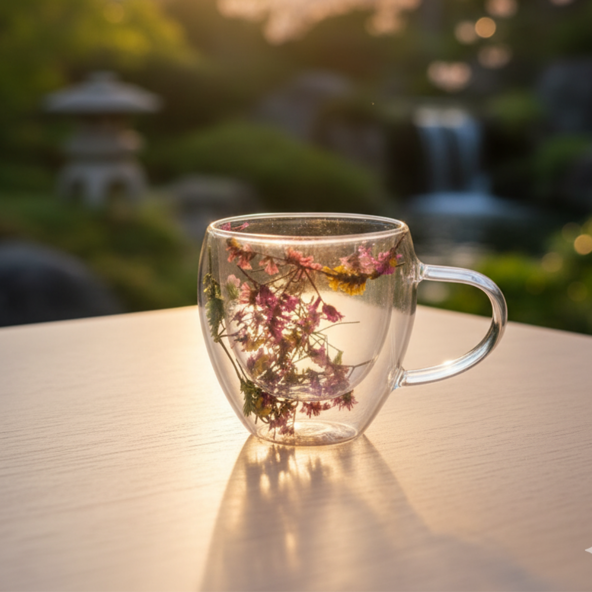 Acabamento refinado que combina com diferentes estilos de mesa. Xícara de Vidro Floral 250ml